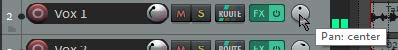 노트: 기본적으로, 음량과 팬 컨트롤은 미디가 아닌 오디오에 대해서만 작동한다. 어떤 트랙에서 이것을 바꾸려면, 트랙에서 마우스 오른쪽 단추를 클릭하고 메뉴에서 MIDI track controls > Link track volume/pan to all MIDI channels를 선택한다.