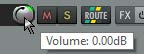 첫 번째 보이는 로터리 조절기는 트랙의 음량을 조절한다. 다른 레이아웃을 선택하면 수평 페이더 형태가 되기도 한다. 가로든 세로든 혹은 로터리 조절기이든, 먼저 조절기를 마우스 왼쪽 클릭 한 상태에서 원하는 방향으로 끌어주고, 다시 마우스 단추를 놔주면 값이 변경된다. 로터리 조절기의 경우 마우스를 위쪽으로 끌면 시계방향으로 돌고, 아래쪽으로 끌면 반시계 방향으로 돌아간다.