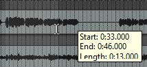 Loop points are not linked to time selection 옵션이 꺼져 있는 상태에서, 루프가 아닌 시간 선택을 하려면, 미디어 항목의 위나 아래, 또는 편곡 영역의 비어 있는 곳에서 마우스를 잡아 끌면 된다. 마우스를 잡아 끄는 동안, 툴팁으로 현재 선택의 시작 지점, 끝 지점, 그리고 선택된 길이가 표시된다.