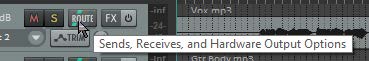 각 트랙에는 Routing 단추가 달려있다. 그 위에 마우스 커서를 올려두면 툴팁으로 송신과 수신 트랙이 표시되게 된다. 단추를 클릭하면 트랙 라우팅 창이 표시된다.
