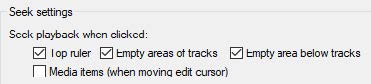 팁 2: 시간 눈금이나 편곡 영역의 어떤 지점을 클릭하게 되면 재생 커서가 그 위치로 이동하게 된다. 이 옵션은 Options > Preferences > Audio > Seeking > Seek playback when clicked 탭에서 선택해서 켜고 끌 수 있다.