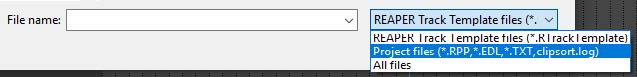 기존 프로젝트를 불러 사용하려면, Open track template 대화창에서 파일 형식을 Project files로 선택하고, 불러들일 프로젝트 파일을 찾은 후에 Open 단추를 클릭하면 된다. 불러들인 프로젝트에 포함됐던 트랙들은 현재 선택된 트랙 아래쪽에 추가된다.