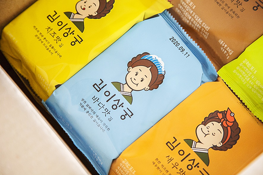다소 캐릭터가 강조된 상품인데, 생각해보면 아이들만 캐릭터에 입맛이 움직이는 것은 아닌 것 같다. 눈과 입 모두 뇌로 연결되어 있는 이유가 뭐겠는가? 어른의 눈과 입이라고 서로 다른 뇌에 연결되어 있겠는가? 본 것이나 맛이나 어차피 뇌로 가면 시냅스 전기 신호로 서로 뒤엉켜 이웃지간일 테니 말이다. 뭐, 그런 점에서 김이상궁 광천김 6종 세트 포장은 일단 귀여워서 좋다.